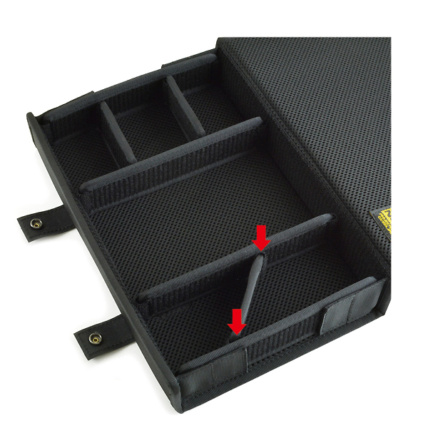 簡単に仕切りの位置が変えられるイヤフォンケース-Ver.2.0 6個用<ワイド> (バリスティックナイロン製:ブラック) 【VE045-00】