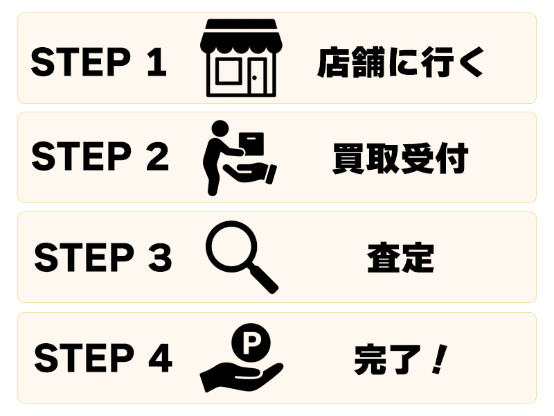 お近くの店舗へ買取希望の商品をお持ち込みください。